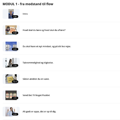 Du modtager moduler drypvis med 21-28 dages interval. Det er gjort nemt og overskueligt for dig med små korte videoer, som er delt op efter emne.